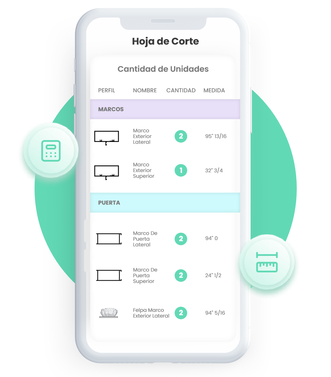 Con las medidas proporcionadas, Luminio genera automáticamente la hoja de corte, optimizando el uso de materiales y reduciendo los errores de cálculo.